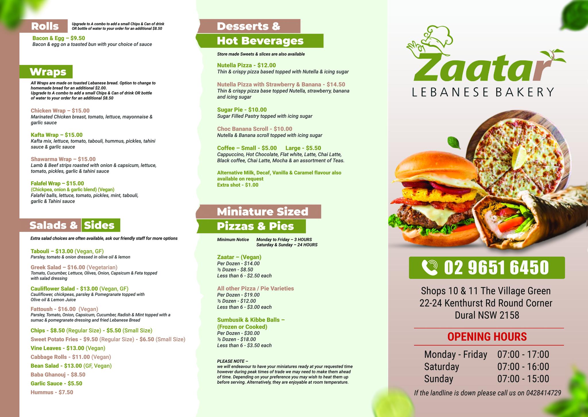 Zaatar mix, tomato, onion, olives, mint, cucumber & labne